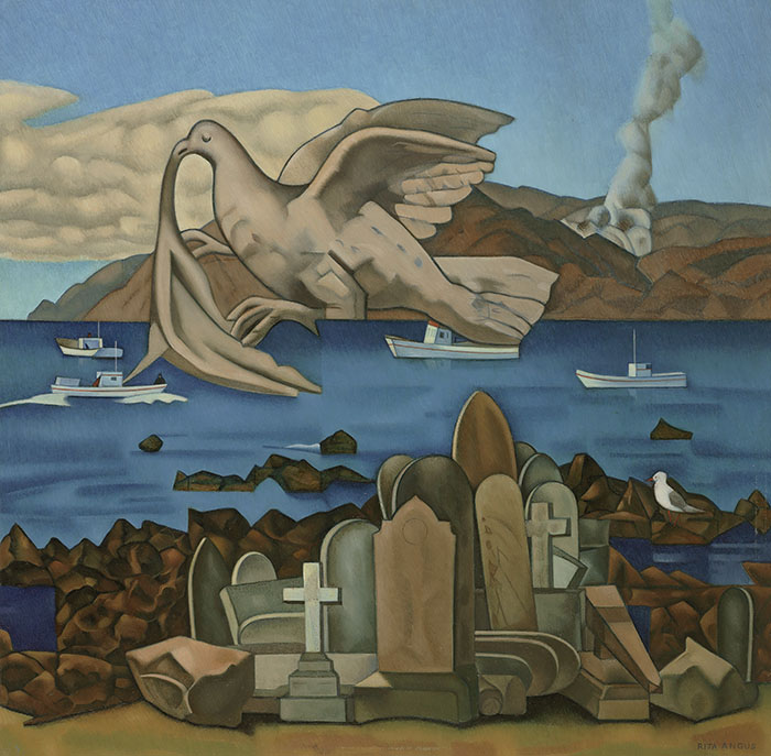 Rita Angus, Flight, 1969, Wellington. Purchased 1970 from Wellington City Council Picture Purchase Fund. © Reproduced courtesy of the Estate of Rita Angus. Te Papa (1970-0012-1)