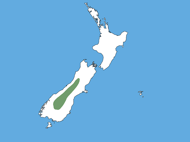The eastern subspecies can be found in the Otago highlands, while the western subspecies is generally found in the alpine and subnival areas of the Southern Alps.