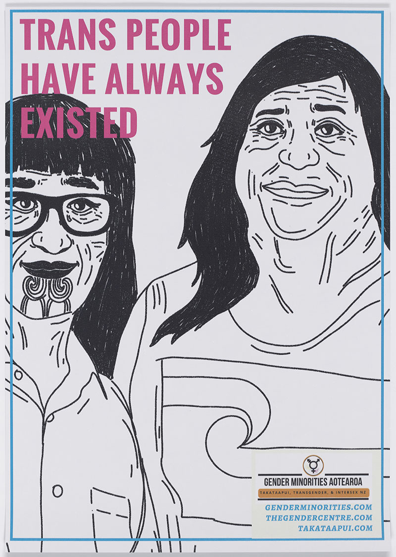 Trans Is Beautiful poster, 2018, illustration by Ariki Arts, design by Ahi Wi-Hongi, published by Gender Minorities Aotearoa, New Zealand. Te Papa (GH025385)