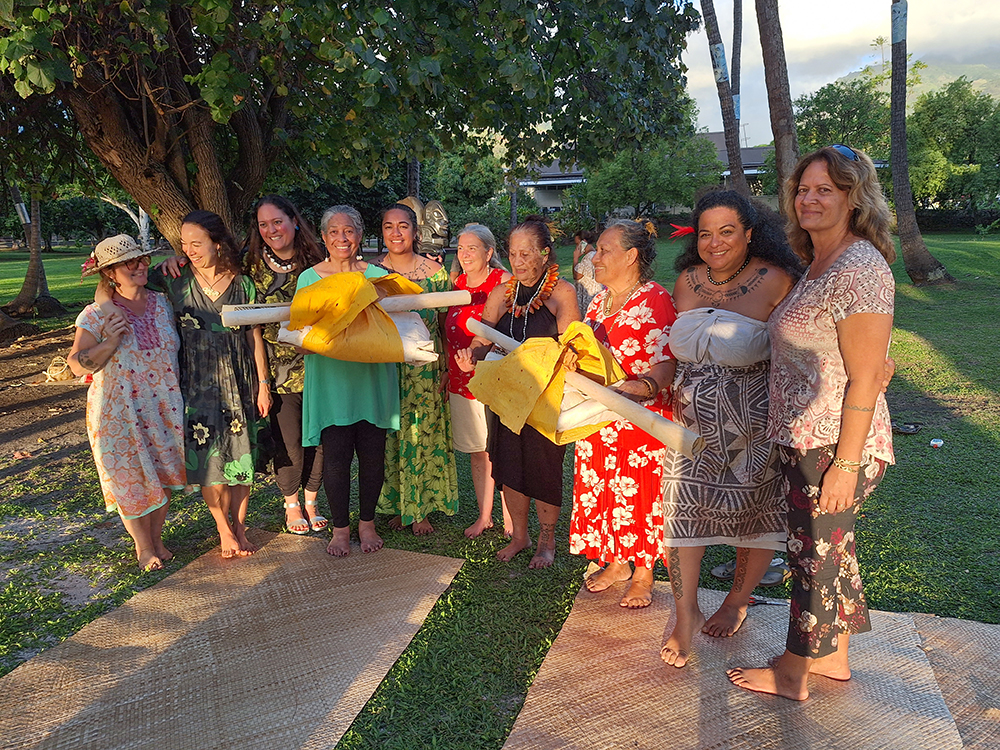 In 2023, ‘Ahu: ngā wairua o Hina, a wānanga attended by makers, Te Papa curators, and our Senior Librarian, was held in Tahiti to explore and respond to the samplers in the book.